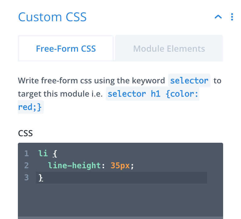 In the Advanced tab, you will want to Custom CSS. Make sure you are in the “Free-Form CSS” tab.